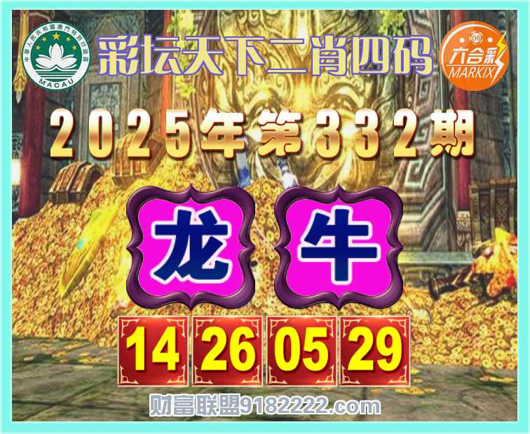 332期:【彩坛天下】 📸二肖四码📸【牛】【14.26.05.29】开:龙26