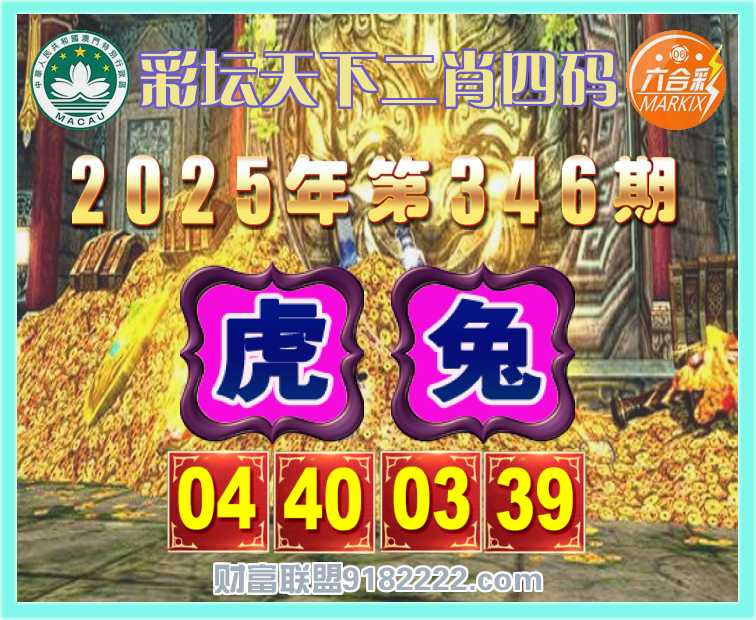 346期:【彩坛天下】 📸二肖四码📸【虎】【04.40.03.39】开:兔03